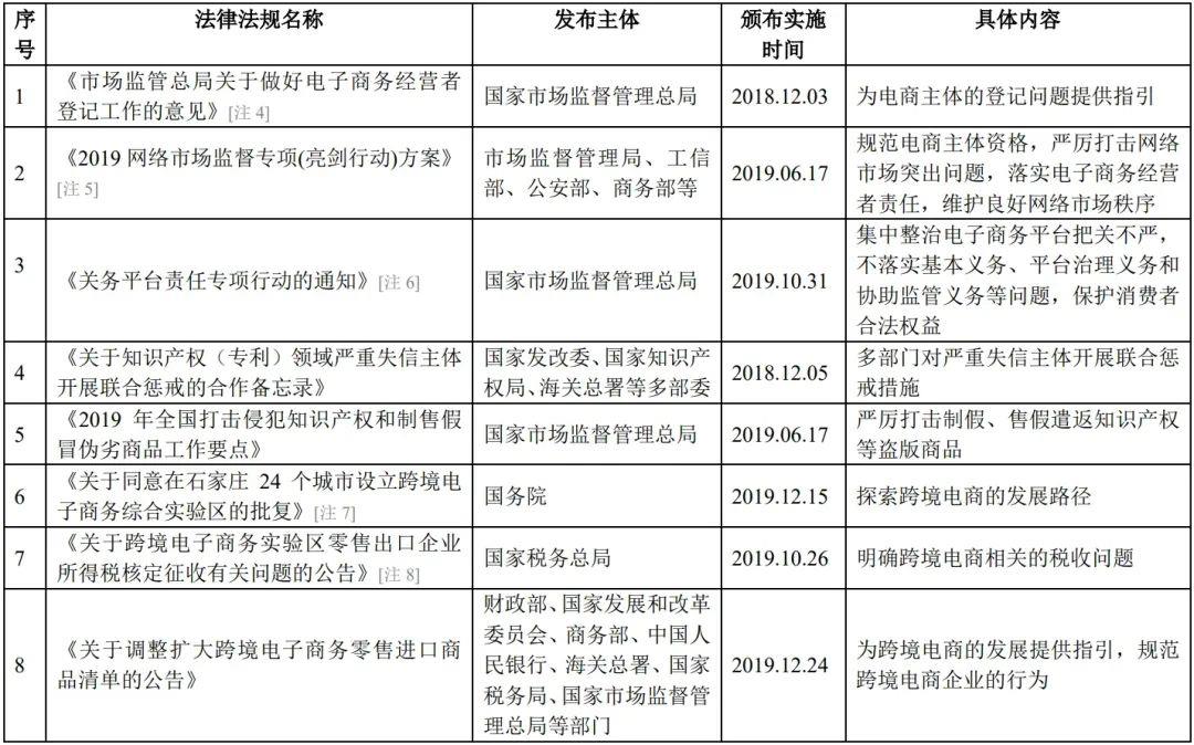 除此之外,自《電子商務法》頒布之后,相關政府機構在其框架下頒布了一系列法律法規,進一步完善對跨境電商行業的監管,詳見下表: