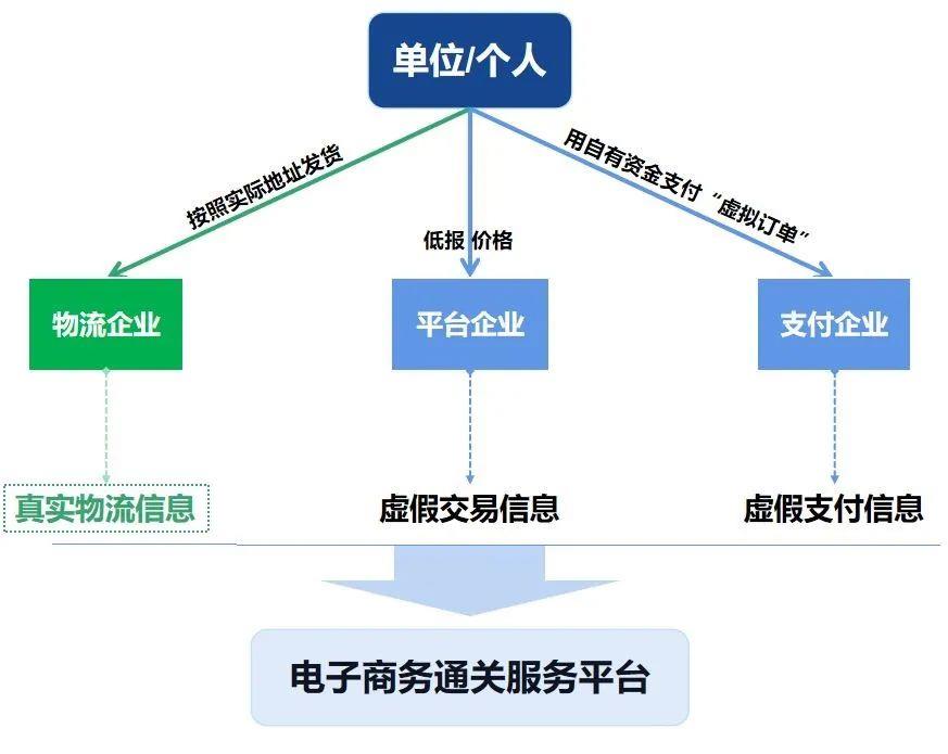 跨境電商運營過程中低報價格,主要是基于跨境電商平臺上生成的真實有效的訂單來進行價格造假,實現以低報價格手段逃避繳納稅款,行為模式如下圖所示: