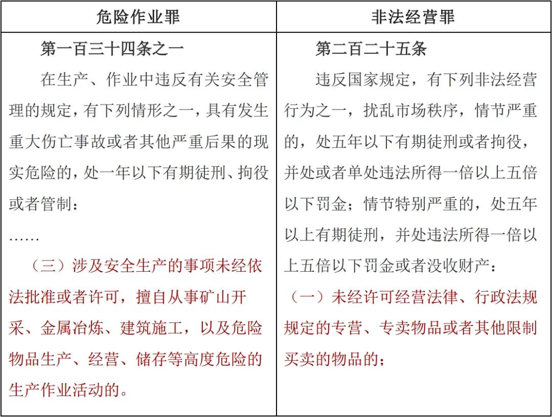 可見,即使構成想象競合犯,并非必然從一重處斷。針對“擅自生產、經營?;贰钡男袨椋瑫r觸犯非法經營罪和危險作業罪,不能當然以重罪非法經營罪定罪處罰,還需考慮新罪名的立法態度的轉變。