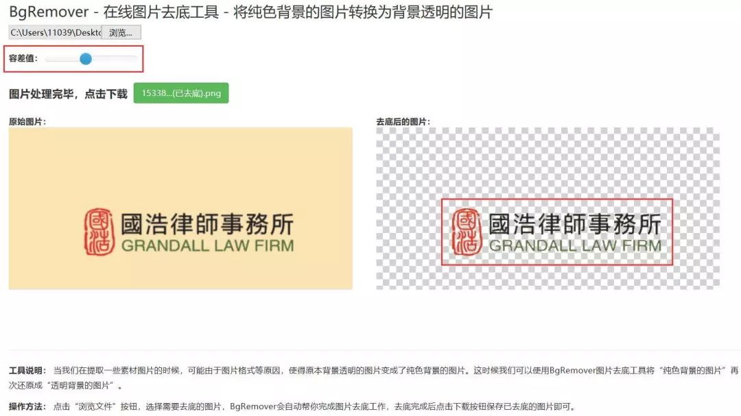 使用Bgremover需要把相關(guān)圖片上傳,該軟件即能自動識別LOGO,用戶僅需調(diào)整容差值的比例,無需其他任何操作,便能獲取相對較為精確的LOGO圖像,且背景完全為透明色,使用Bgremover的效果圖如下: