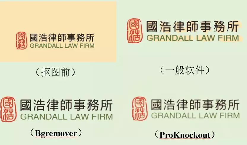 經(jīng)過筆者試驗(yàn),簡單的 LOGO更適合用Bgremover,復(fù)雜的LOGO更適合用ProKnockout,用戶在實(shí)際操作中可對兩個摳圖工具都進(jìn)行嘗試。總體而言,Bgremover操作更方便,ProKnockout摳圖效果更精細(xì),具體幾個效果對比圖如下所示: