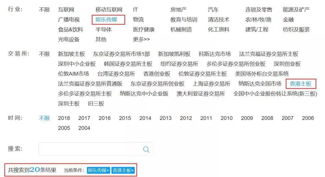 筆者曾經(jīng)在法律檢索的過程中,需要尋找香港主板上市的電影制作與發(fā)行行業(yè)的案例,通過一般搜索引擎搜索出的案例不但不全面,而且時間較為久遠(yuǎn),通過投資界的行業(yè)分類和交易所分類,可迅速找出現(xiàn)香港主板上市的電影制作與發(fā)行公司,具體步驟如下: