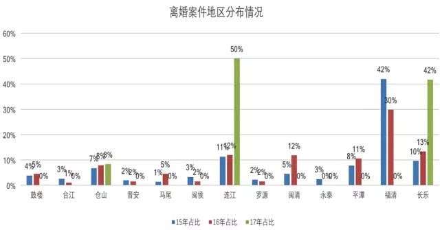 3. 本報告統計范圍為2015年至2017年福州地區(具體為鼓樓區、臺江區、倉山區、晉安區、馬尾區、閩侯縣、連江縣、羅源縣、閩清縣、永泰縣、平潭縣、福清市、長樂區)離婚糾紛案件判決書;