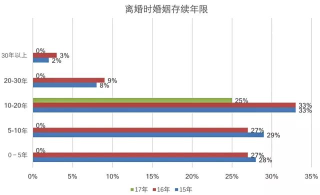 科學研究表明,每當人的大腦倦怠時,那些能讓人感受到愛情愉悅的激素即會減少或消失,這段時間大約是七年左右,所以七年之癢常常被稱作婚姻中最危險的時點。全國《司法大數據之離婚糾紛》也顯示其中2-7年為婚姻破裂的高發期。而福州地區近三年的離婚糾紛數據統計,均顯示離婚時婚姻存續10-20年的比例是最大的,這說明出福州地區離婚人群的婚姻存續時間普遍較長,人們對于婚姻還是偏向保守、慎重的。但婚姻無論何時都需要保鮮,即使熬過了七年之癢,如未妥善經營,也可能走不過十年之約,更無法白頭到老。