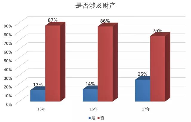 我們統計發現,離婚糾紛案件中涉及財產分割的案件占比并不大,這其中可能存在夫妻對共有財產的分配已經提前做出了約定,同時,司法實踐中也存在因財產情況較為復雜,法院判令在另外的財產糾紛案件中對離婚財產分割做出處理的情形。