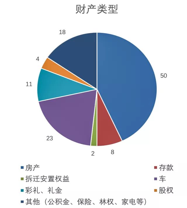 數據顯示,房產作為中國家庭最重要的資產,在離婚財產分割中占了50%。由于近年來房產增值很大,離婚雙方對房產的爭奪比較激烈。特別是年輕夫妻,如果雙方都來自普通家庭,一方或雙方父母資助購房的情況極為普遍,往往耗盡父母多年的積蓄,也因此容易引發爭議。除了傳統的存款、房產外,離婚糾紛所涉及財產的類型表現形式也日趨多樣化,公司股權、拆遷安置權益、大額保單、彩禮、公積金等財產類型也出現在離婚財產的處理中。