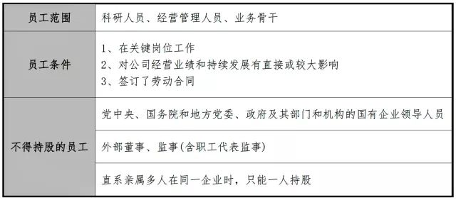 (法條依據(jù):《關(guān)于國有控股混合所有制企業(yè)開展員工持股試點的意見》第4條)