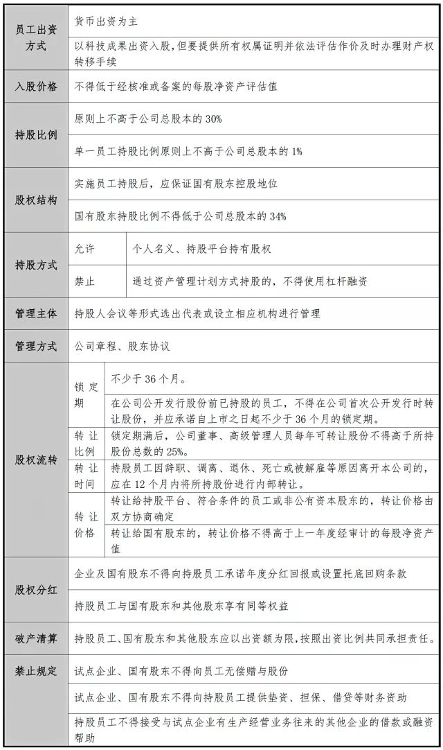 (法條依據(jù):《關(guān)于國有控股混合所有制企業(yè)開展員工持股試點的意見》第1、2、5條)