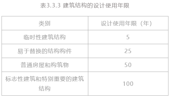 3.3.3 建筑結構的設計使用年限,應按表3.3.3采用