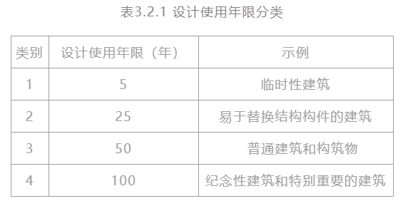 3.2.1 民用建筑的設計使用年限應符合表3.2.1的規定。