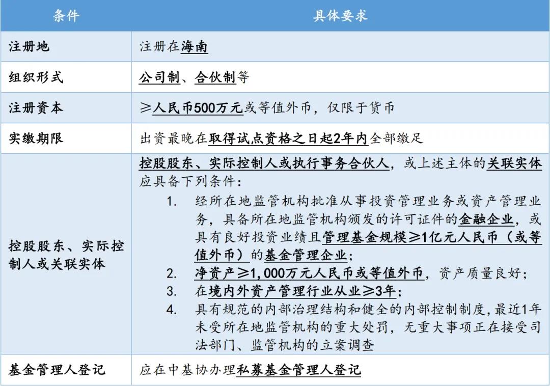 (二) 海南QDLP試點企業的設立條件