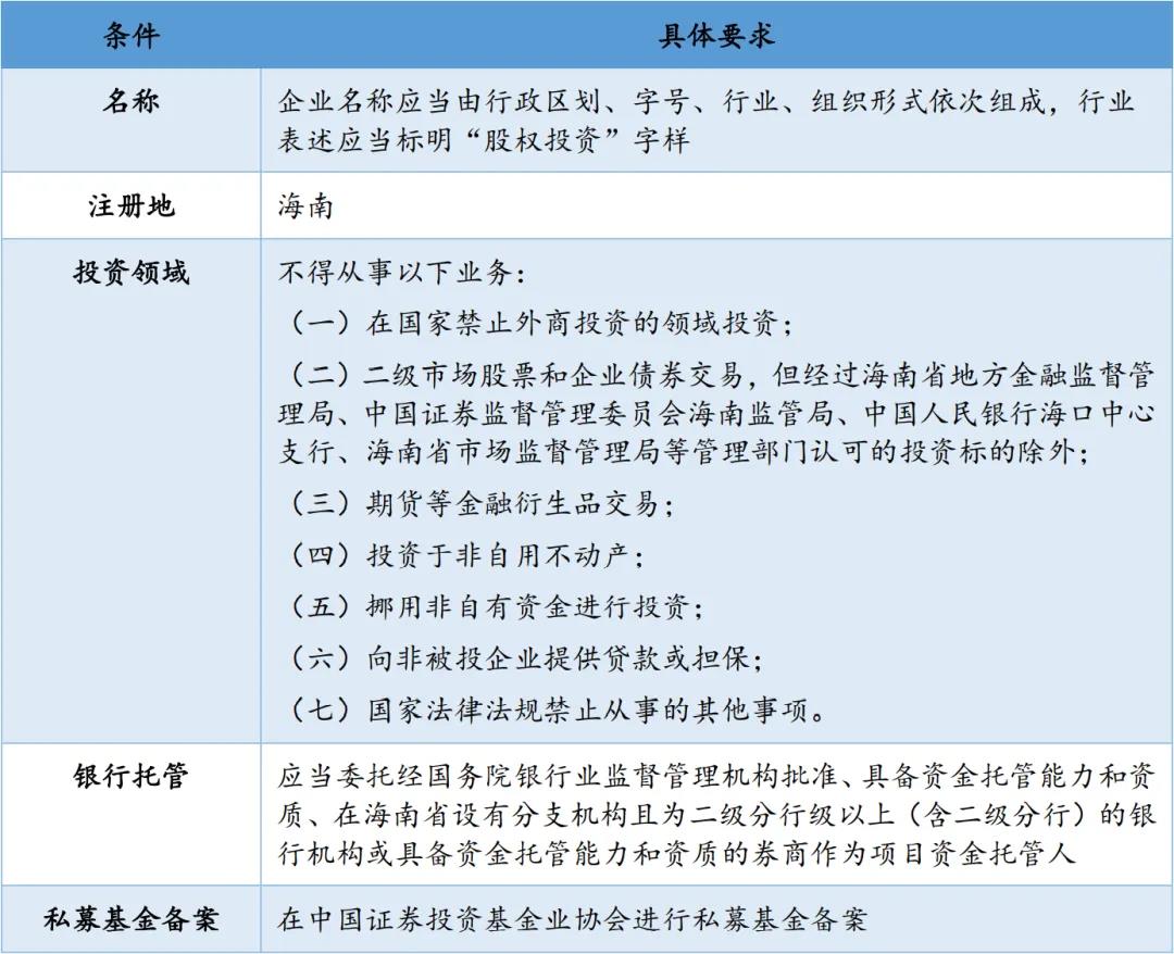 (3) 允許注冊在非海南區域的私募基金管理人在海南設立QFLP基金。