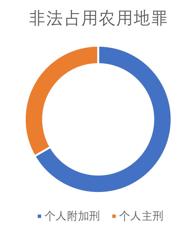 從上圖可知,在非法占用農(nóng)用地罪中,單位犯罪的,個(gè)人不判處主刑占較大比例,為67%,大多數(shù)情況下僅僅判處個(gè)人承擔(dān)罰金一類的附加刑。