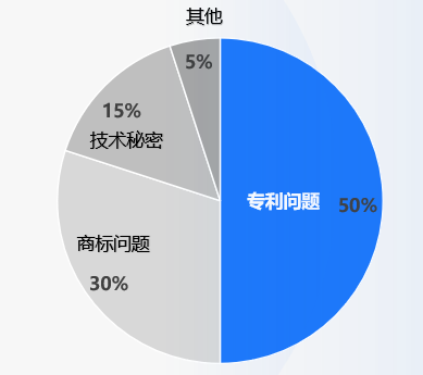 根據統計,在知識產權相關的問詢回復中,排名前三的是專利權、商標權、技術秘密相關問題,分別占50%、30%、15%,其他問題如軟件著作權、集成電路布圖設計等僅占5%??梢钥闯?,專利權與技術秘密,是科技創新成果的基本保護手段,專利權與技術秘密相關問題在知識產權問詢問題中占半數以上。