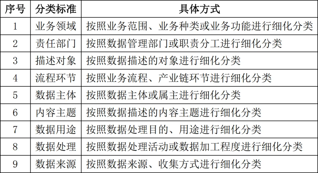 表1:數據分類的一般方式