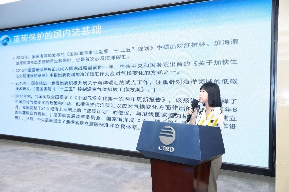 在“綠色技術(shù)創(chuàng)新轉(zhuǎn)化助力海南建設(shè)碳中和示范省”專題研討會上,大連海洋大學(xué)海洋法律與人文學(xué)院副院長、國浩大連律師朱暉發(fā)表了以“藍(lán)碳保護(hù)制度建構(gòu)研究”為題的主旨演講。她認(rèn)為,應(yīng)在“碳中和”視域下加快藍(lán)碳保護(hù)制度建構(gòu)的相關(guān)研究,其具體路徑包括實(shí)施陸海統(tǒng)籌的碳封存計劃、建立統(tǒng)一的藍(lán)碳市場、探索構(gòu)建生態(tài)補(bǔ)償機(jī)制等。