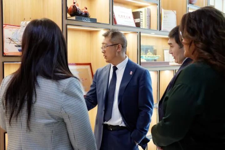 在溫曉軍主任等人的陪同下,Курмангазы主任一行首先參觀了國浩烏魯木齊的現(xiàn)代化辦公場所,并詳細(xì)了解了國浩烏魯木齊在數(shù)智化建設(shè)、國際化布局、黨建工作以及企業(yè)文化等方面的卓越成就。