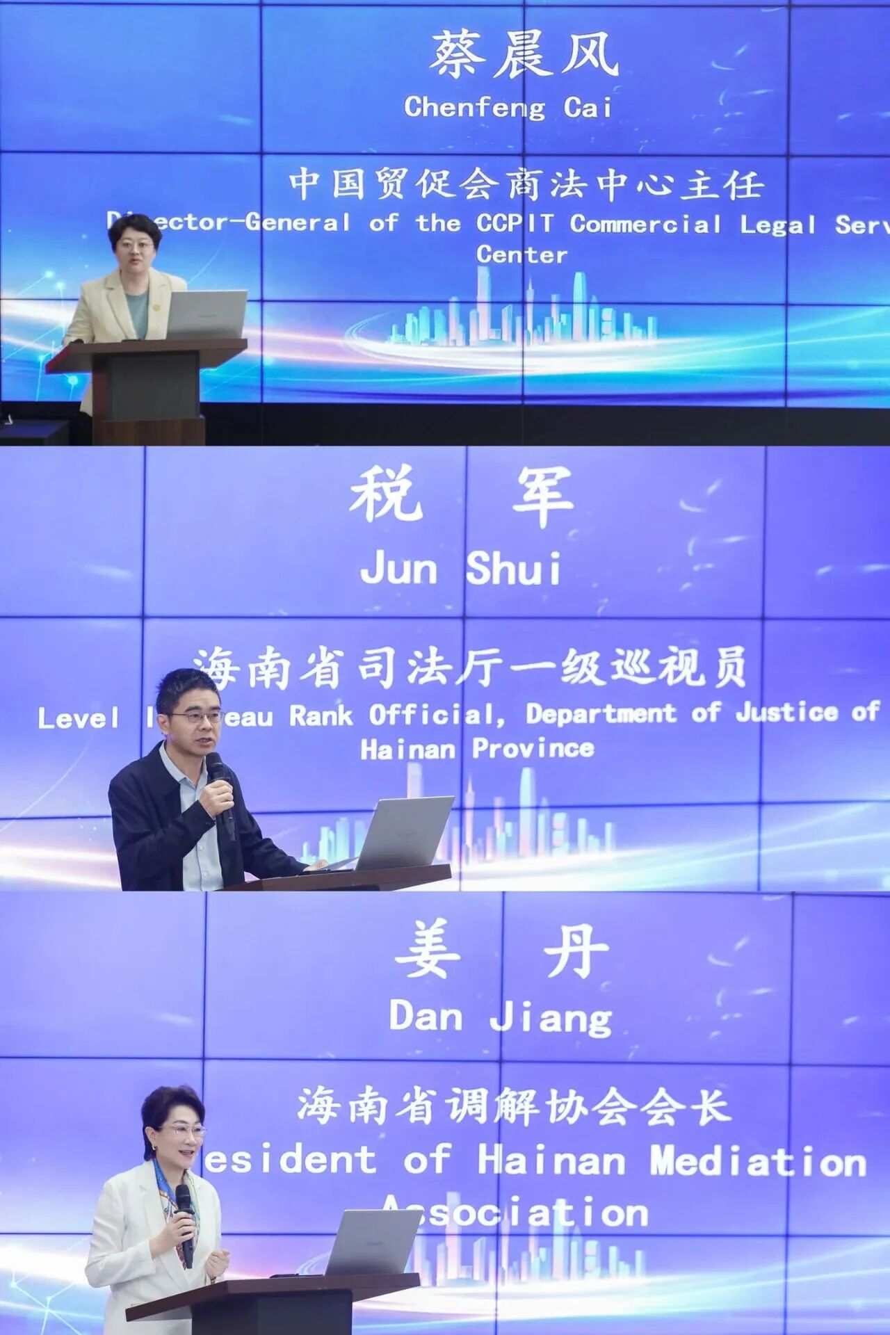中國貿促會商法中心主任蔡晨風,海南省司法廳一級巡視員稅軍,海南省調解協會會長、國浩執行合伙人、國浩海南管理合伙人姜丹出席開班儀式并致辭。他們對參訓學員表示熱烈歡迎,并強調,商事調解人才是海南自貿港開放中化解跨境糾紛、保障權益的核心力量,希望大家以此次培訓為契機,深耕專業、加強合作,為商事調解事業的發展注入新動能。