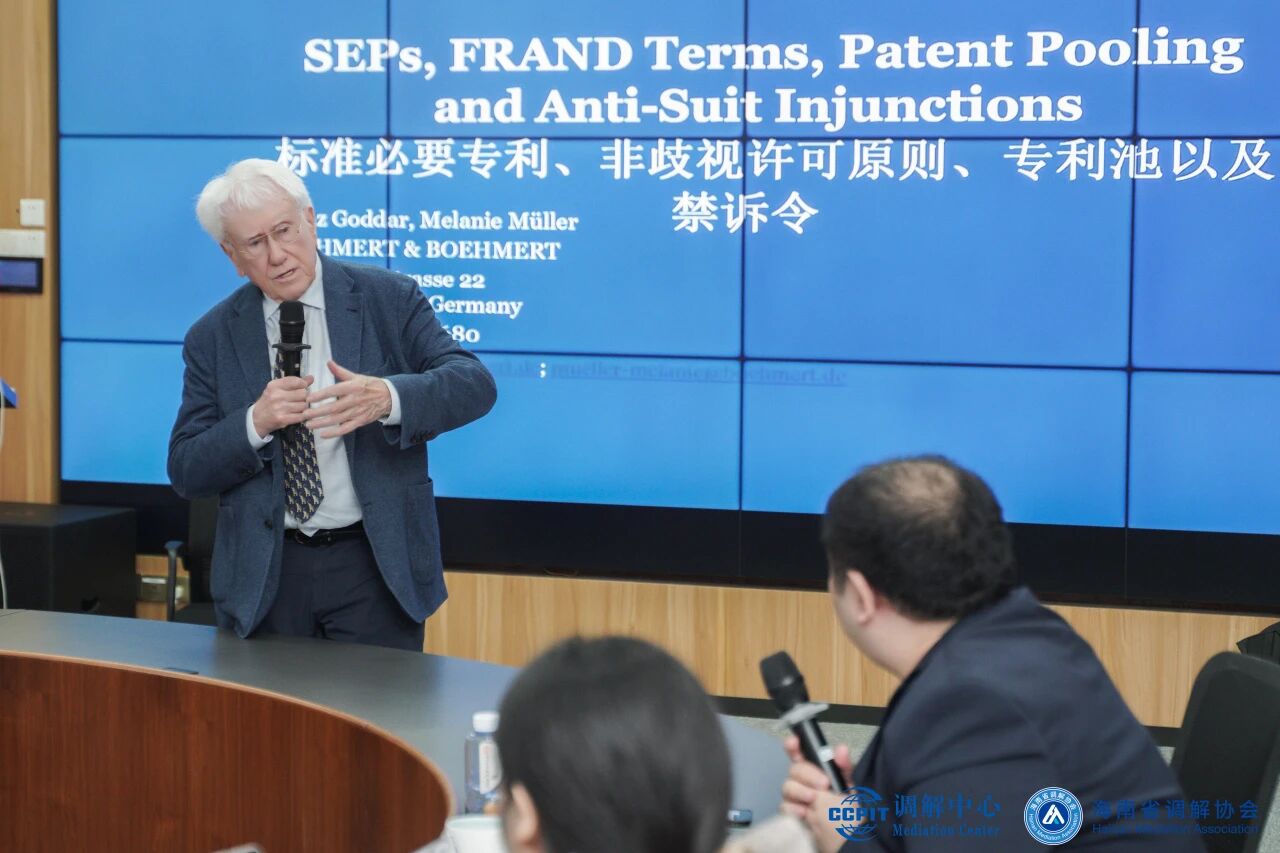 德國博默特&博默特律所合伙人海恩茲·高達結合國際企業的真實案例,就“標準必要專利、非歧視許可原則、專利池及禁訴令”展開深入剖析,詳細拆解了專利池構建、禁訴令應對等復雜問題,為處理高端知識產權跨境爭議提供了關鍵性思路與實戰策略。
