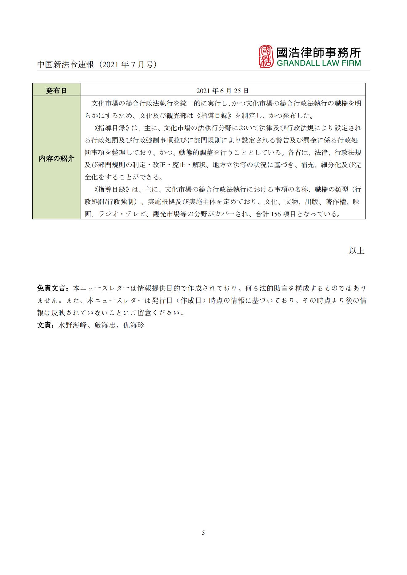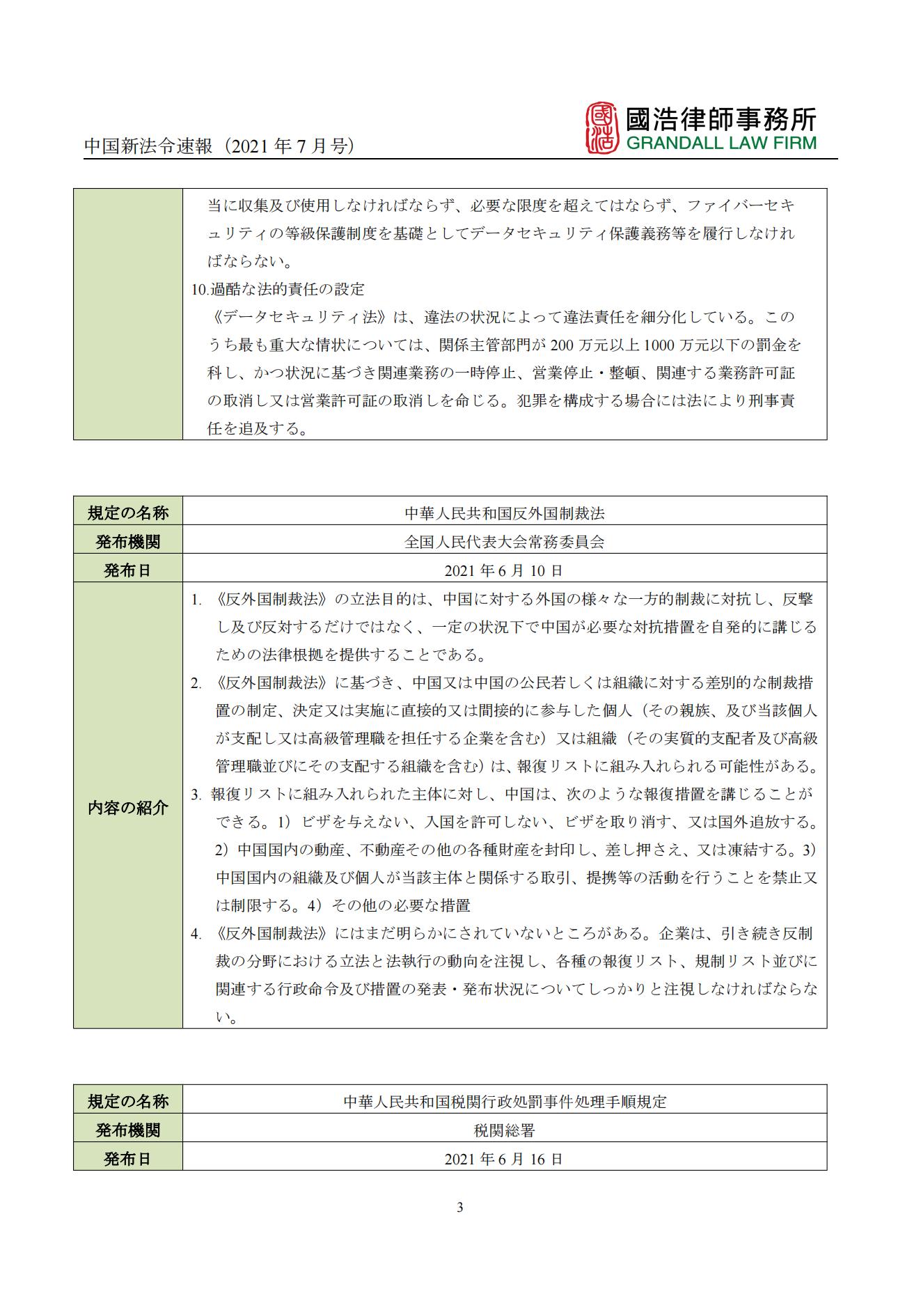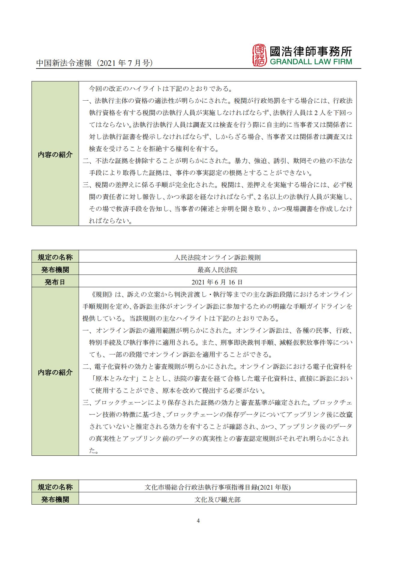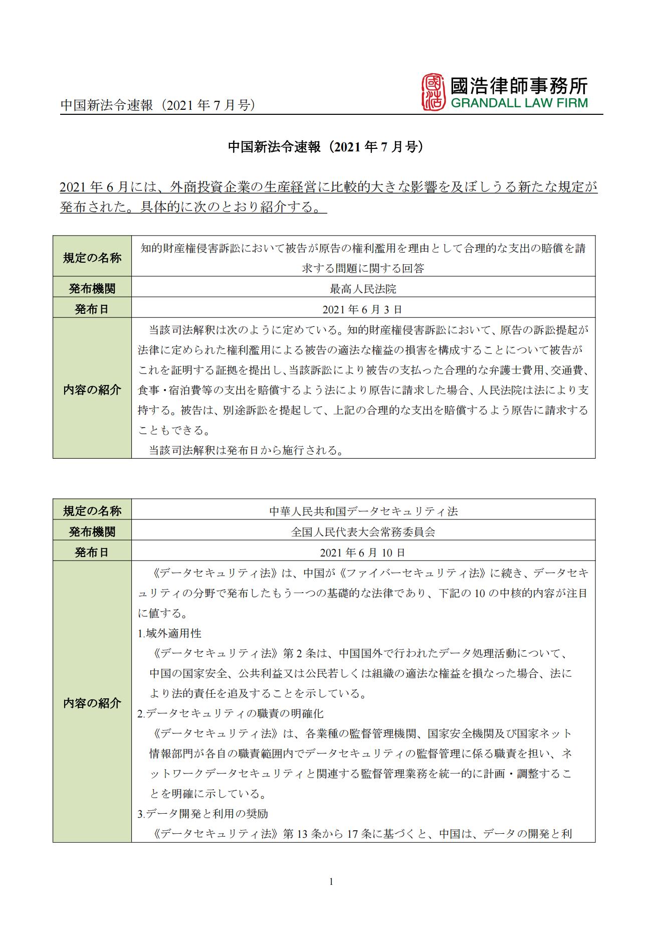中國新法令速報(2021年7月號)