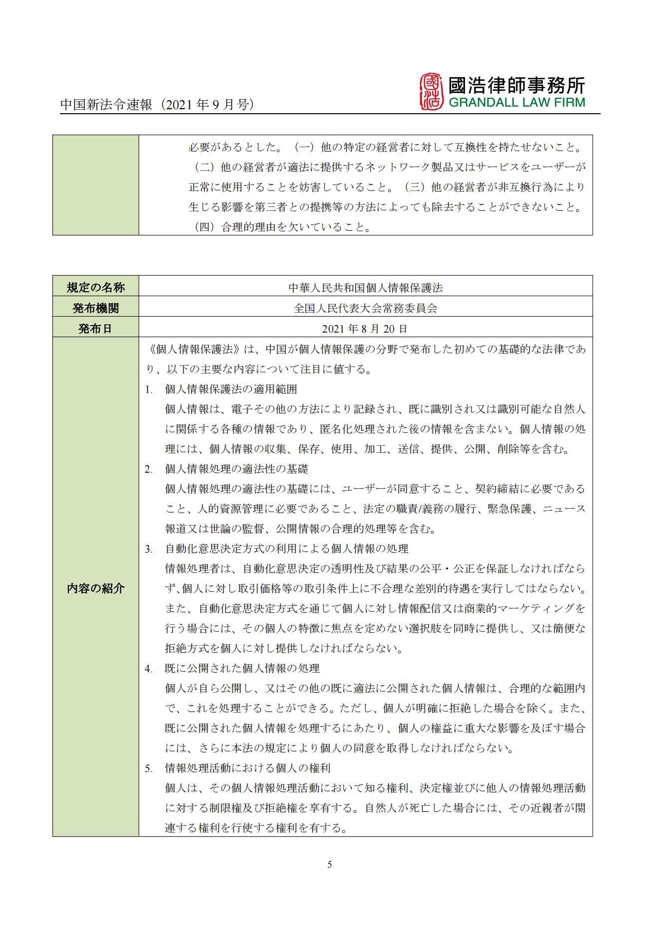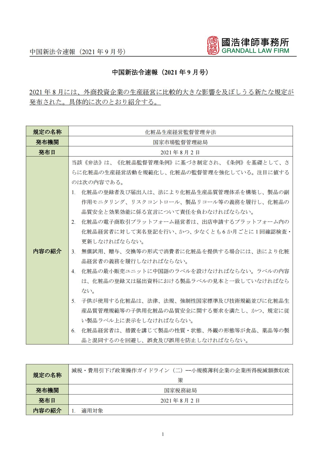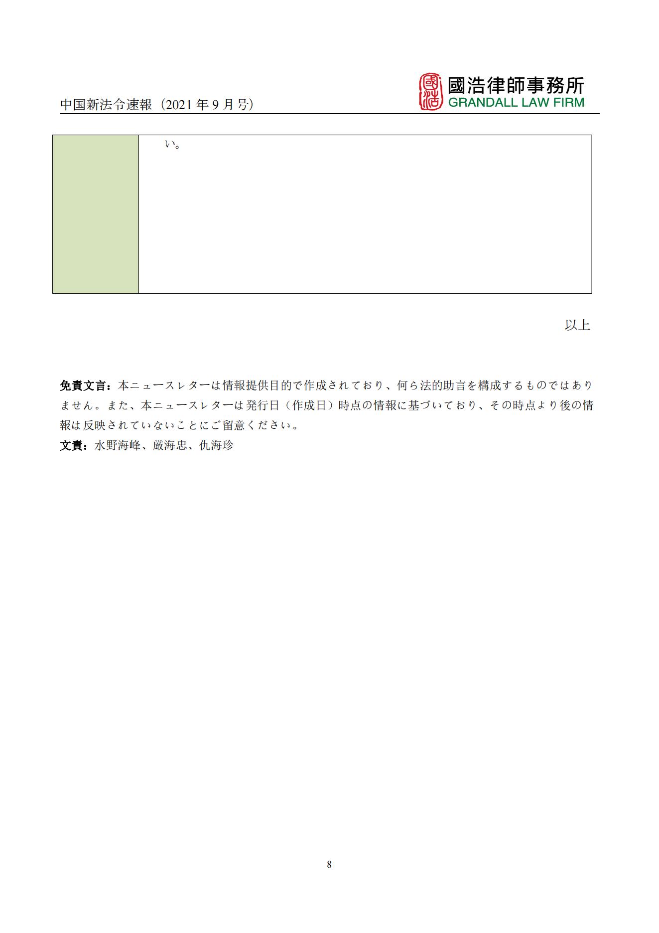 中國(guó)新法令速報(bào)(2021年9月號(hào))