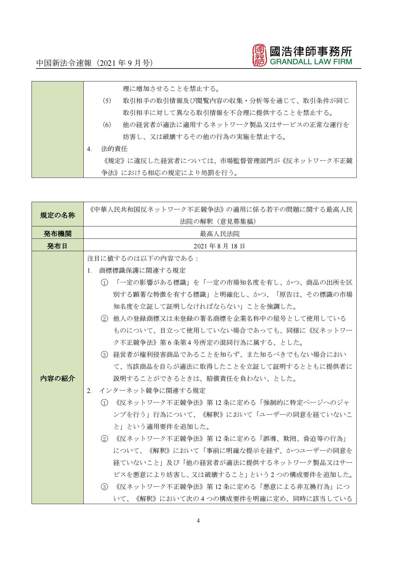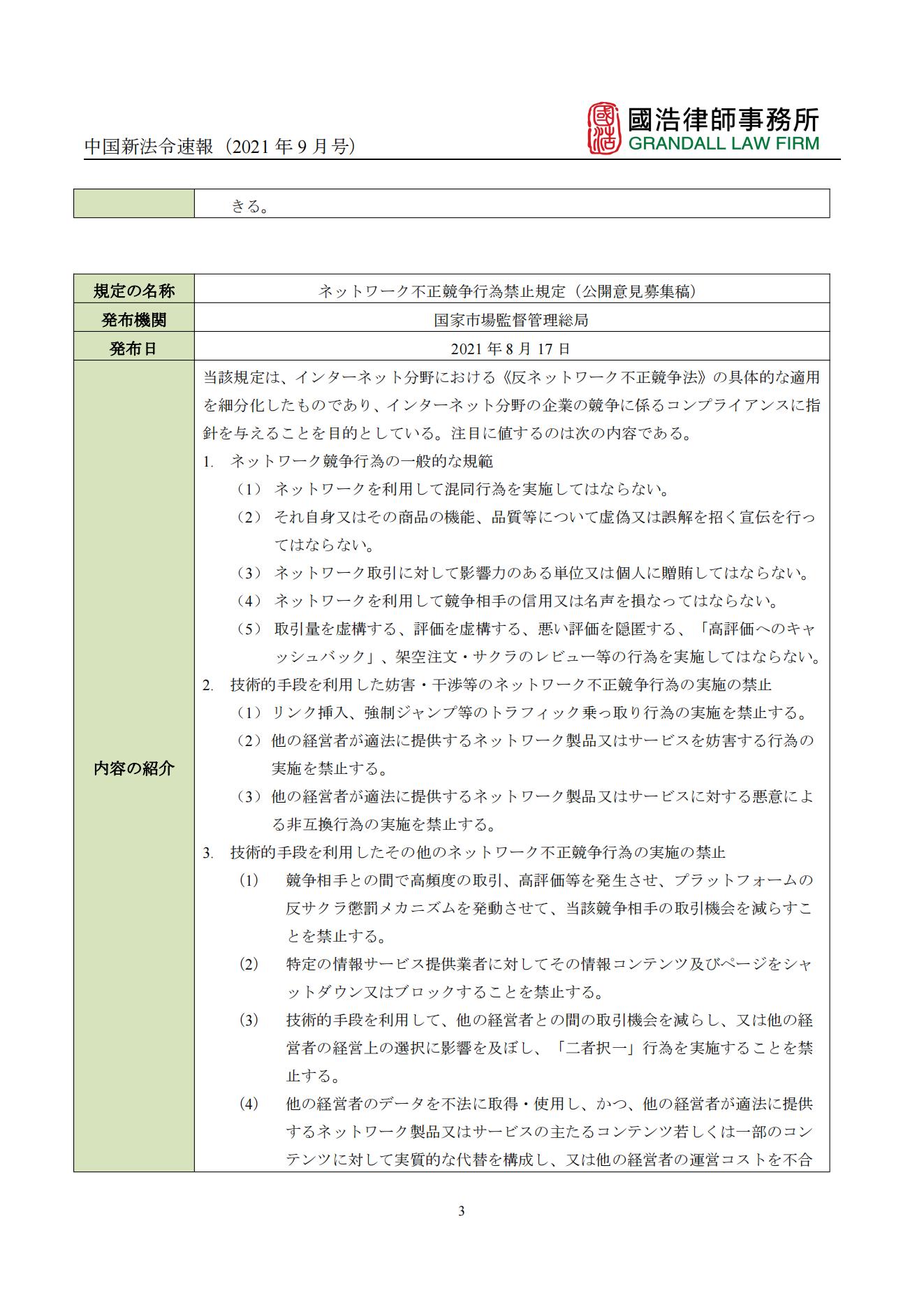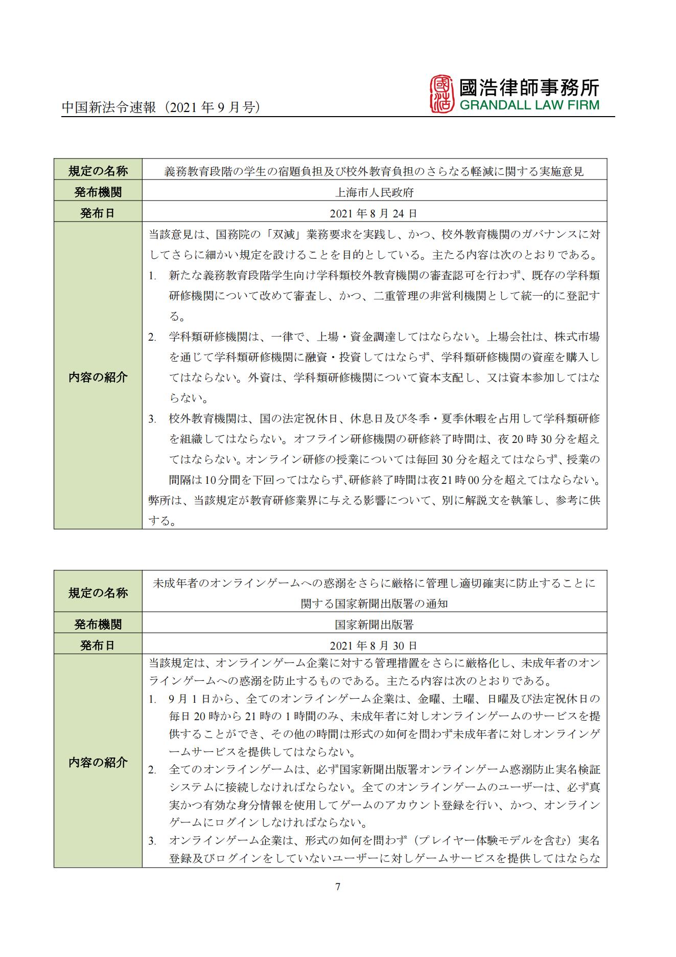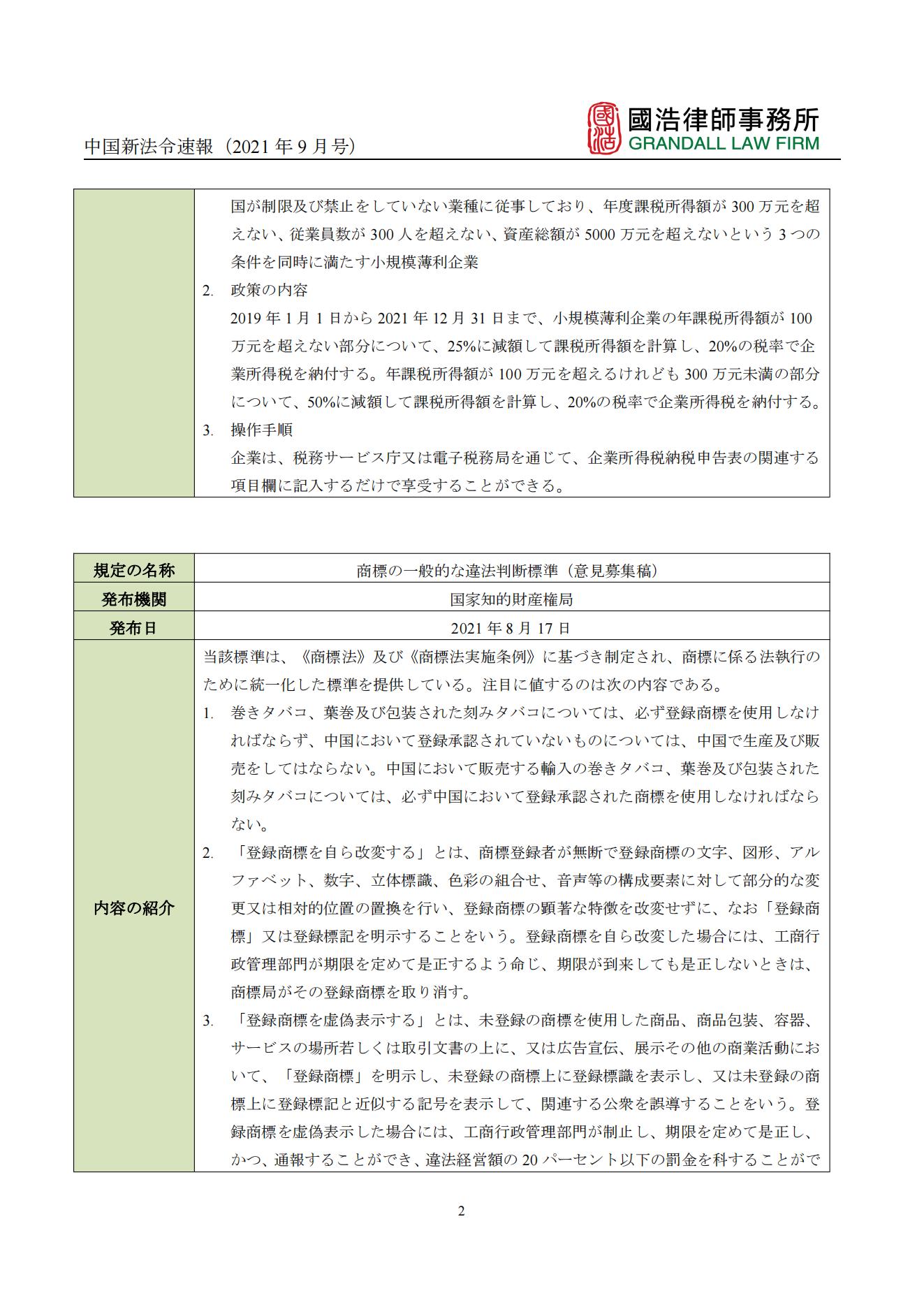 中國(guó)新法令速報(bào)(2021年9月號(hào))