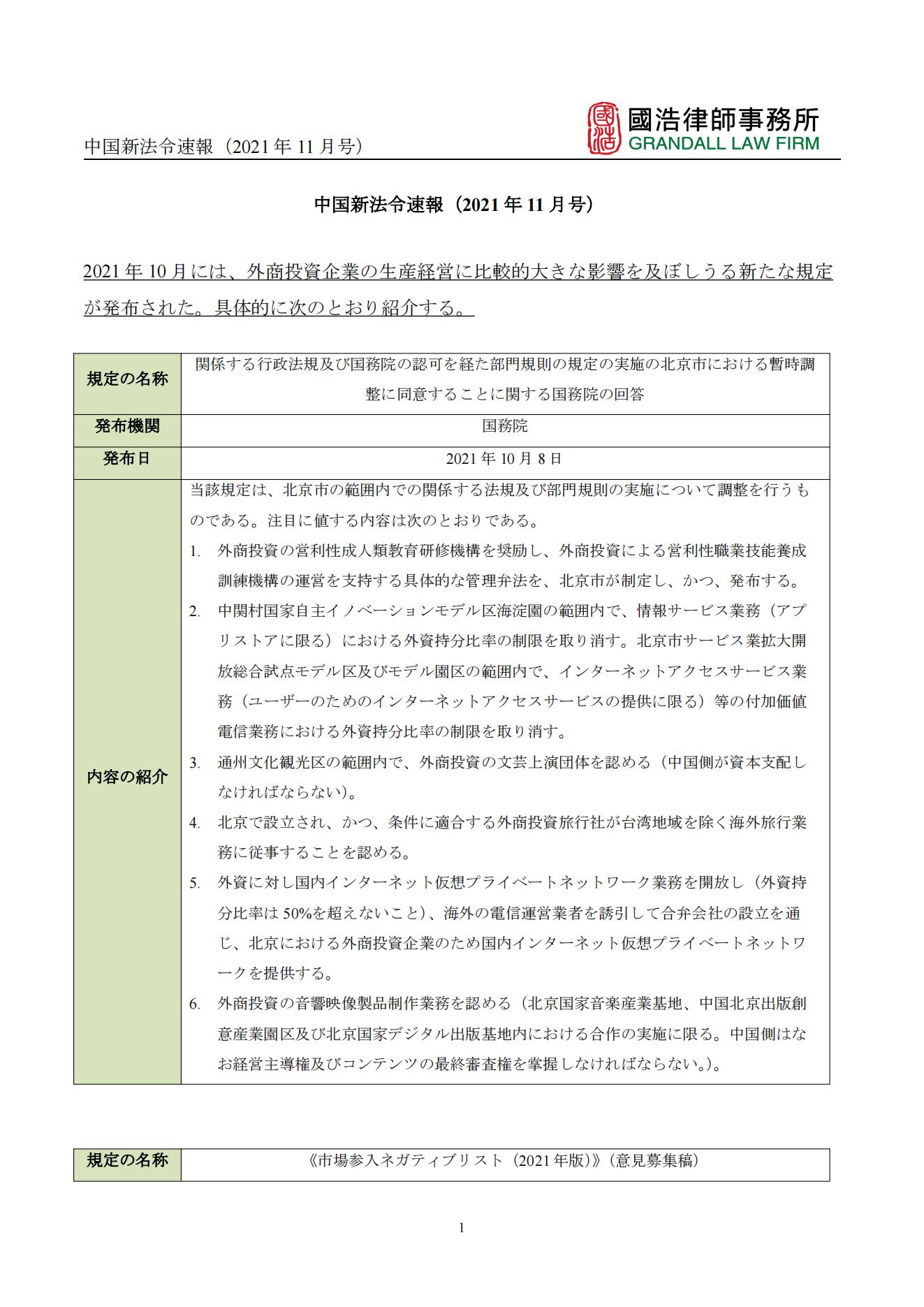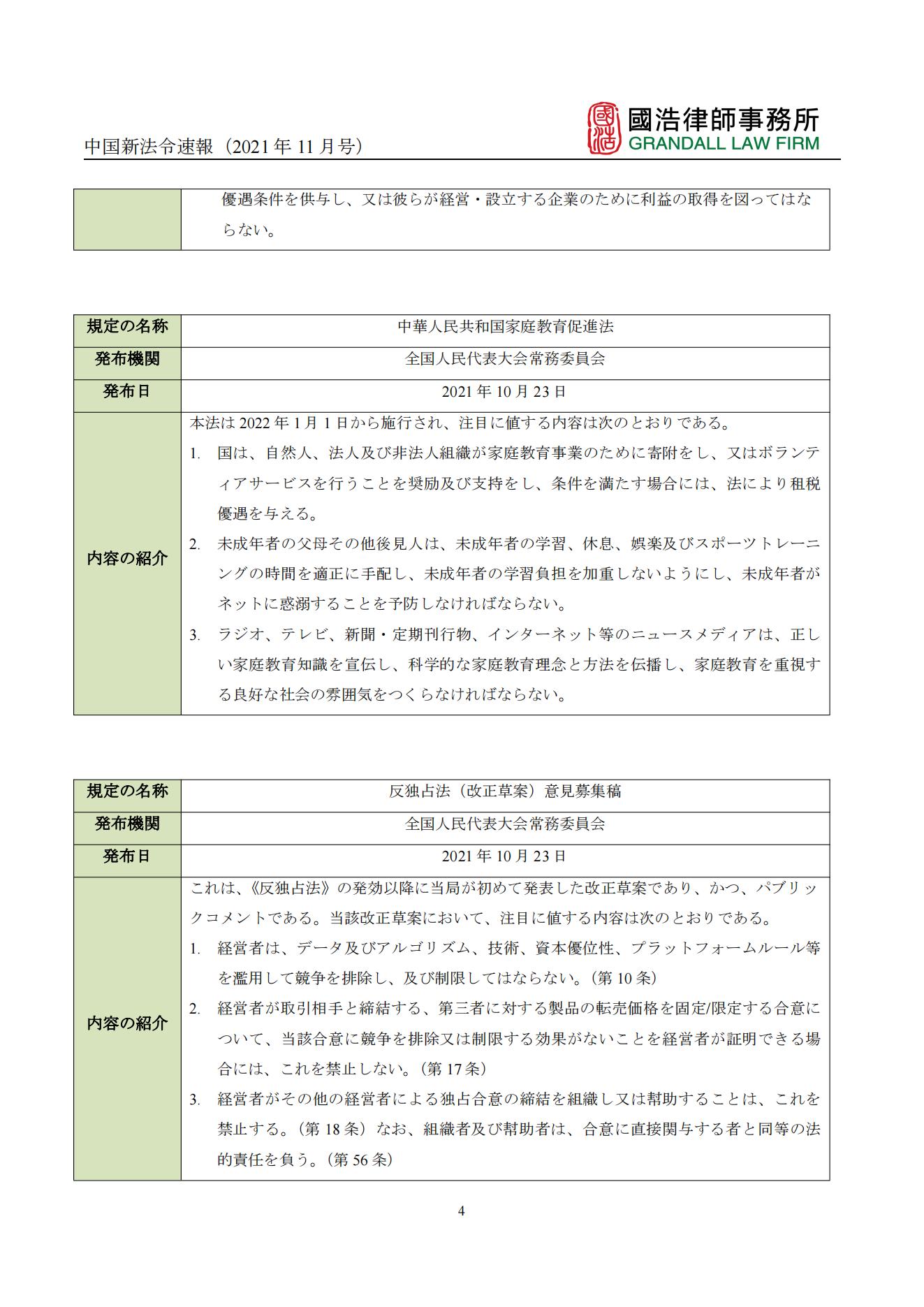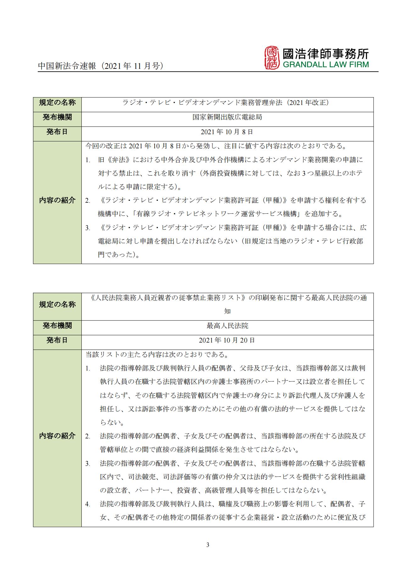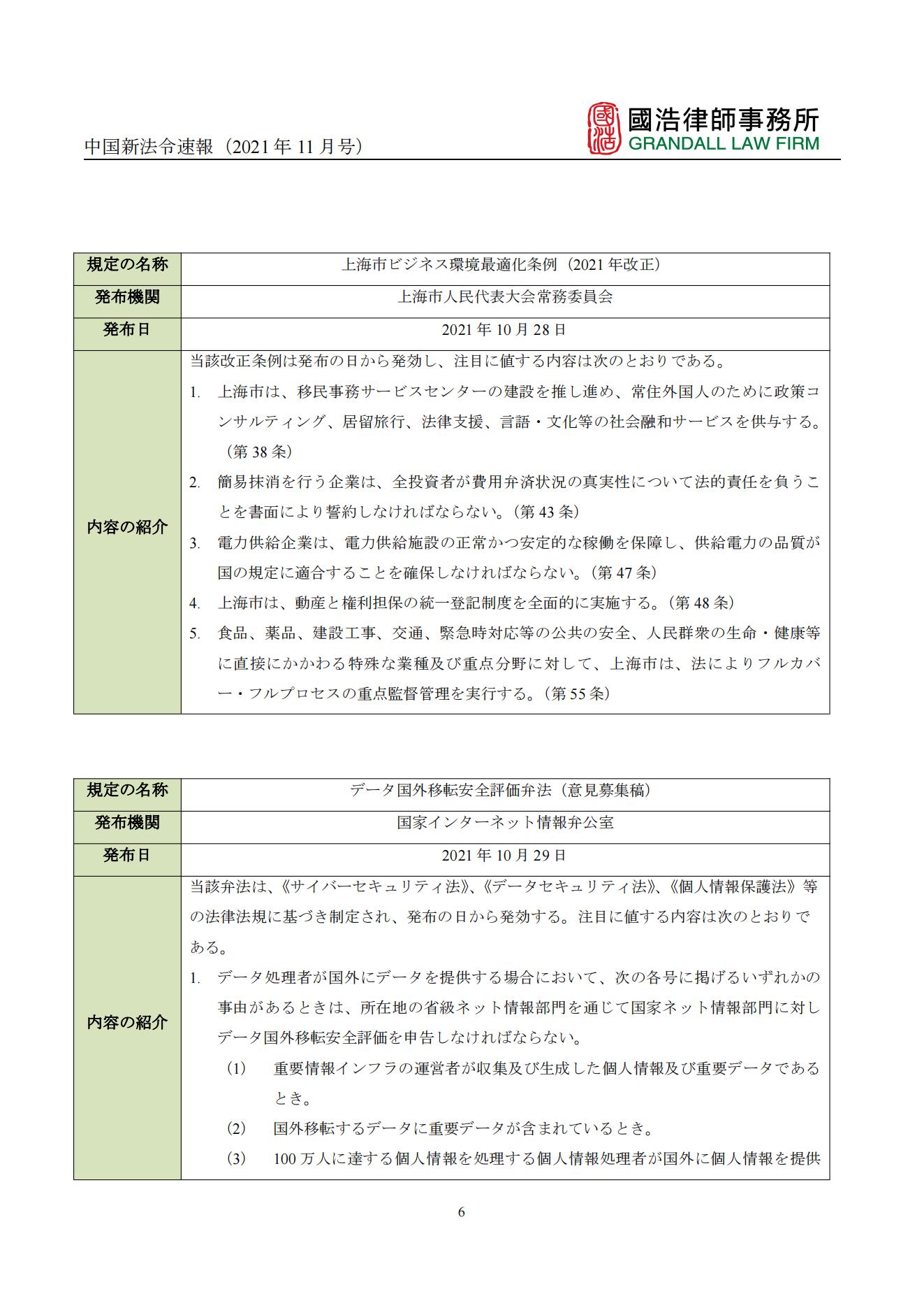 中國(guó)新法令速報(bào)(2021年11月號(hào))