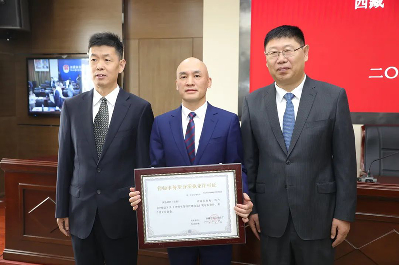 在西藏自治區司法廳舉行的西藏“無律師縣”律師事務所分所頒證儀式上, 西藏自治區司法廳黨委副書記、廳長張會明出席儀式并講話,西藏自治區司法廳黨委委員、副廳長張宏發主持了會議,張會明廳長與有關負責人向30家縣域分所頒發律師事務所執業許可證書,國浩律師(拉孜)事務所獲正式授牌。劉鑫律師作為國浩拉孜執行主任參加了本次頒證儀式,并作為“無律師縣”分所律師代表作表態發言。