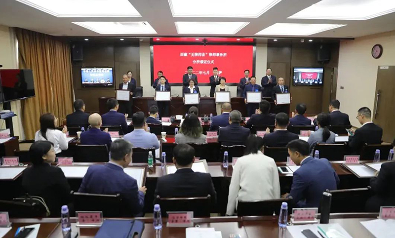 7月29日,司法部舉行推動基本解決全國“無律師縣”問題新聞發布會,發布會采用“線上+線下”的形式,并視頻連線了西藏自治區等5個省(區)司法廳為“無律師縣”律師事務所分所舉行的頒發執業許可證儀式