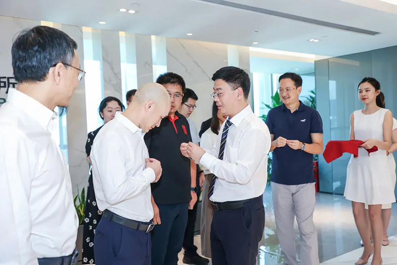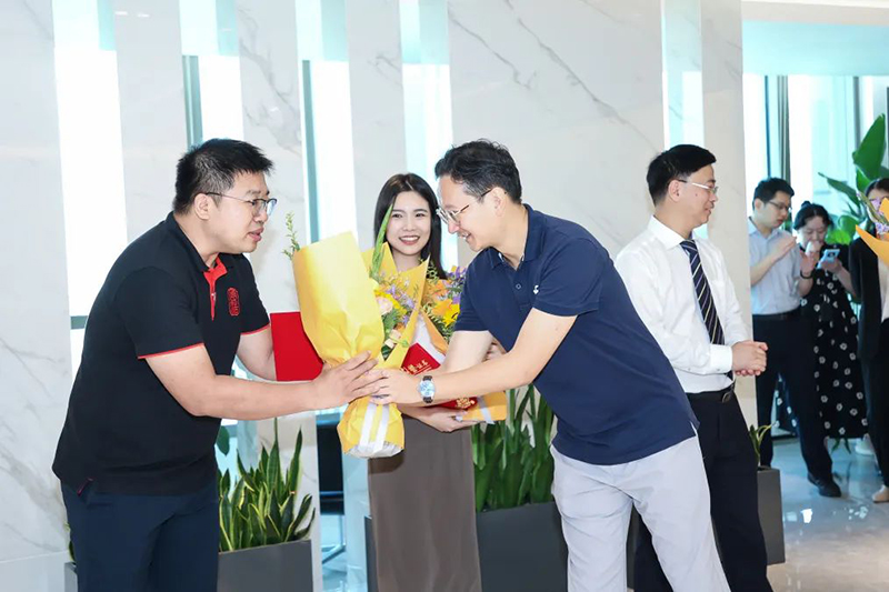 國浩上海辦公室管理合伙人、黨委書記管建軍,第二批駐藏律師代表、國浩上海合伙人孫正君,為本批國浩駐藏律師授國浩徽章,頒發榮譽證書和鮮花。
