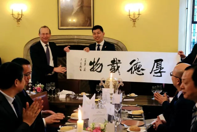 本期領(lǐng)導(dǎo)力培訓(xùn)的學(xué)員代表李強(qiáng)律師代表全體國浩學(xué)員表達(dá)了對嘉治商學(xué)院和所有授課老師的感謝,并向嘉治商學(xué)院禮贈了一幅書有“厚德載物”的書畫作品。李強(qiáng)律師還用英文向蓋伊主任闡釋了“厚德載物”的出處及寓意,以贊譽嘉治商學(xué)院及老師們美德深厚、容載萬物。