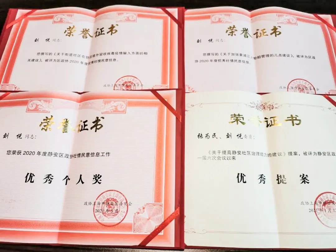 2015年底,閘北區、靜安區“撤二建一”。2016年,已近花甲之年的陳學斌從政協委員的位置上退出。2018年,國浩上海合伙人劉悅接替成為新靜安區政協委員。劉悅感到,發現問題并提出建議與律師的工作方式高度一致,律師在這一工作中,具備天然優勢。自2014年加入中國民主建國會,她便積極反映社情民意,每年約20條,至今已逾百條,其中許多被民建中央、市政協、市委統戰部采納,她也成為了民建靜安29支部主委。