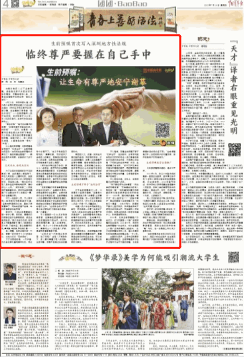 6月23日,深圳市第七屆人民代表大會常務委員會第十次會議表決通過《深圳經濟特區醫療條例》修訂稿,在全國首次將患者“臨終決定權”——生前預囑寫入地方性法規,該法規將于2023年1月1日正式施行。此舉引發社會各界熱議。