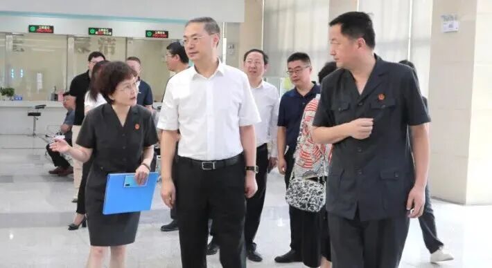 △周世虹(右二)到合肥市廬陽區人民法院調研司法改革與人民群眾訴訟權利保障情況。