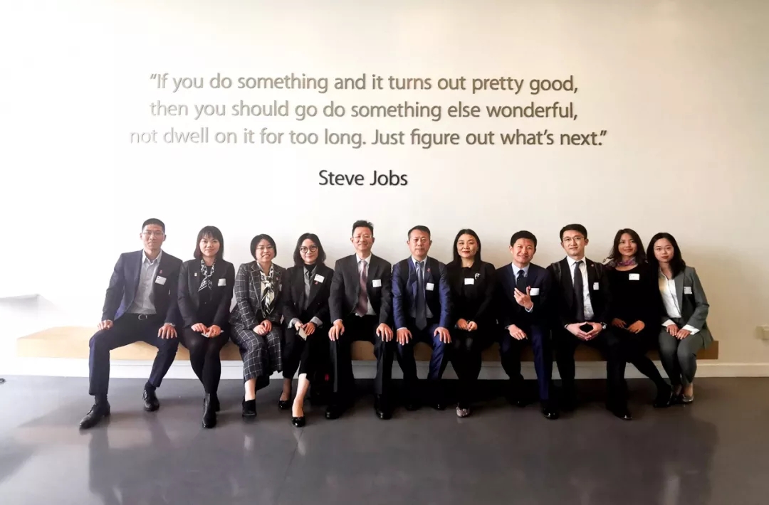帶著滿滿的收獲,國浩律師參觀了美國硅谷最大的孵化器公司Plug and Play,隨后又參觀了蘋果公司并在蘋果創(chuàng)始人喬布斯的巨幅照片和企業(yè)信條下合影留念。大家體驗(yàn)到了蘋果公司的獨(dú)特之處,就以后怎樣更好地服務(wù)客戶也得到了不少啟發(fā)。