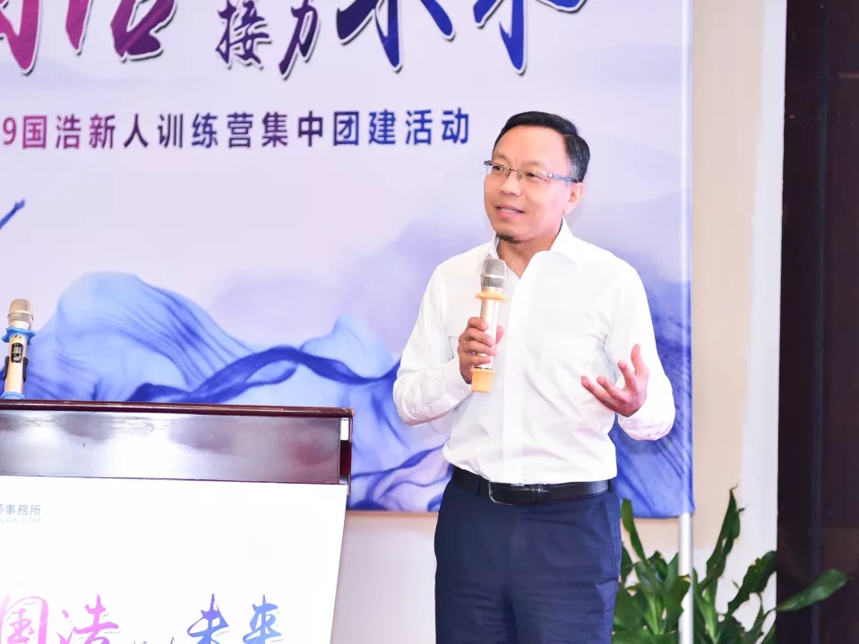 集團首席執行合伙人呂紅兵以“我們為什么要來松江?”開篇,為國浩新人帶來了一份“新律師錦囊”。呂紅兵律師首先問大家我們今天為什么要共同“穿國浩衣、帶國浩徽、說國浩話、抒國浩情、講國浩夢”?正所謂“不知禮,無以立也”、“恭敬之心,禮之端也”,國浩新人團建培訓活動正是為了讓每一位新人通過這種形式、儀式、典禮而產生恭敬之心,恭敬中國律師這份職業,恭敬我們的組織,恭敬職業與組織的文化。