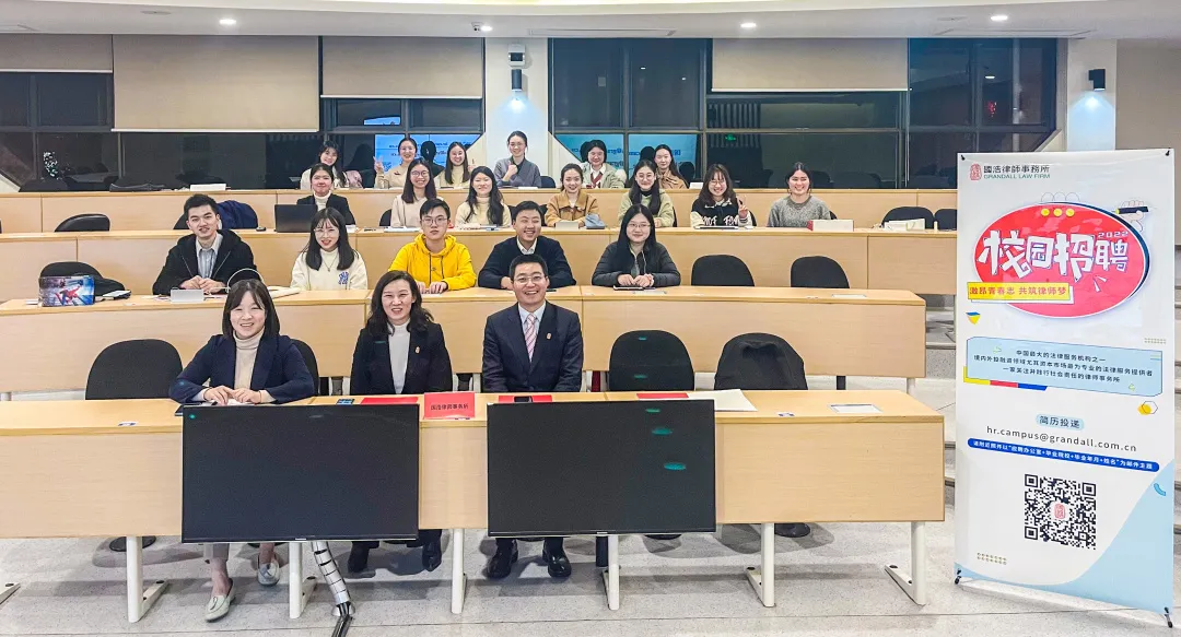 12月29日,葛霞青律師與國(guó)浩蘇州律師鄭宣霞前往蘇州大學(xué)王健法學(xué)院進(jìn)行宣講。葛律師介紹了國(guó)浩蘇州的基本情況,國(guó)浩蘇州現(xiàn)有129名員工,其中執(zhí)業(yè)律師74人,研究生學(xué)歷占比43%,律所規(guī)模及業(yè)務(wù)創(chuàng)收均居蘇州律師行業(yè)前列。葛律師還以照片形象展示了國(guó)浩蘇州的辦公環(huán)境、團(tuán)建活動(dòng)、公益活動(dòng)等,并貼心送上了國(guó)浩蘇州辦公室及蘇州工業(yè)園區(qū)在購(gòu)房補(bǔ)貼、落戶、入學(xué)、優(yōu)惠租房、培訓(xùn)等方面的人才激勵(lì)和扶持措施,吸引了許多同學(xué)交流、咨詢、投簡(jiǎn)歷。