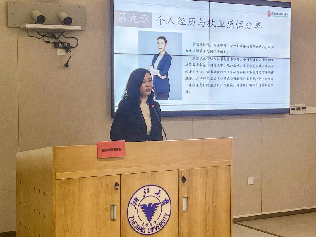 浙大校友、國(guó)浩杭州合伙人余飛濤以《我和國(guó)浩的故事》為主題,從個(gè)人執(zhí)業(yè)選擇、執(zhí)業(yè)經(jīng)歷、及國(guó)浩工作體驗(yàn)等方面分享了工作感悟,以期幫助學(xué)弟學(xué)妹們更加清晰職業(yè)選擇,更好地應(yīng)對(duì)未來(lái)的工作。