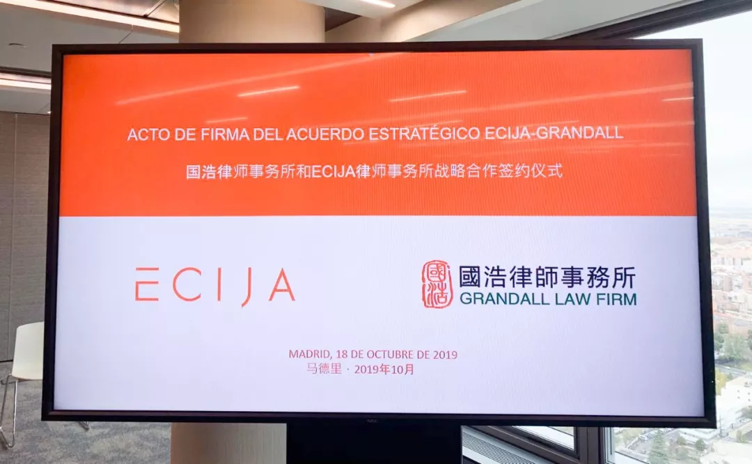 2019年10月18日,國浩律師事務所與位列西班牙排名第一序列律師事務所的ECIJA律師事務所,在該所辦公地馬德里標志性建筑水晶之塔(Torre de Cristal)的主會議室,簽署戰略合作協議。此舉標志著中國和西班牙兩家大型律所在法律業務合作、青年人才培養、市場業務拓展等領域的全面與深度合作啟程。