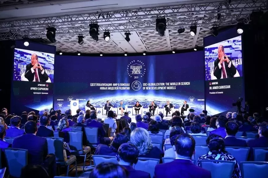歐亞媒體論壇作為中亞領先的獨立對話平臺,主要任務是為政治家,記者和專家就哈薩克斯坦、歐亞大陸和整個國際社會的地緣政治,經濟,社會文化發展等關鍵問題進行自由和公開對話創造條件。本屆論壇匯集了全球60個國家和世界各大洲的500多名代表,論壇主題為“今日世界:現實的轉變”,重要議題為去全球化的過程,消費危機,媒體領域的數字化,以及與新技術和人工智能相關的發展機遇和挑戰。