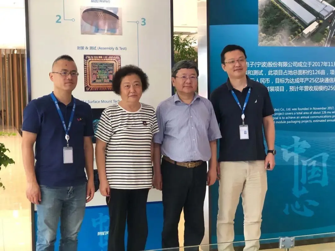 趙白鴿主任調研甬矽電子(寧波)股份有限公司,余姚市委常委、中意寧波生態(tài)園黨工委副書記、管委會副主任韓柏順(右二)、甬矽董事長王順波(左一)陪同調研