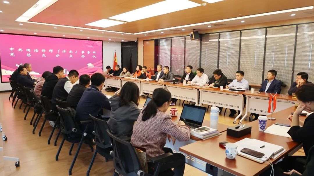 11月5日,國浩濟南召開黨總支擴大會議傳達學習黨的二十大精神,并對國浩濟南全體人員學習貫徹大會精神有關工作作出了初步部署。會議由國浩濟南黨總支書記、管理合伙人、主任鄭繼法主持,國浩執行合伙人王民生及國浩濟南全體合伙人參加。