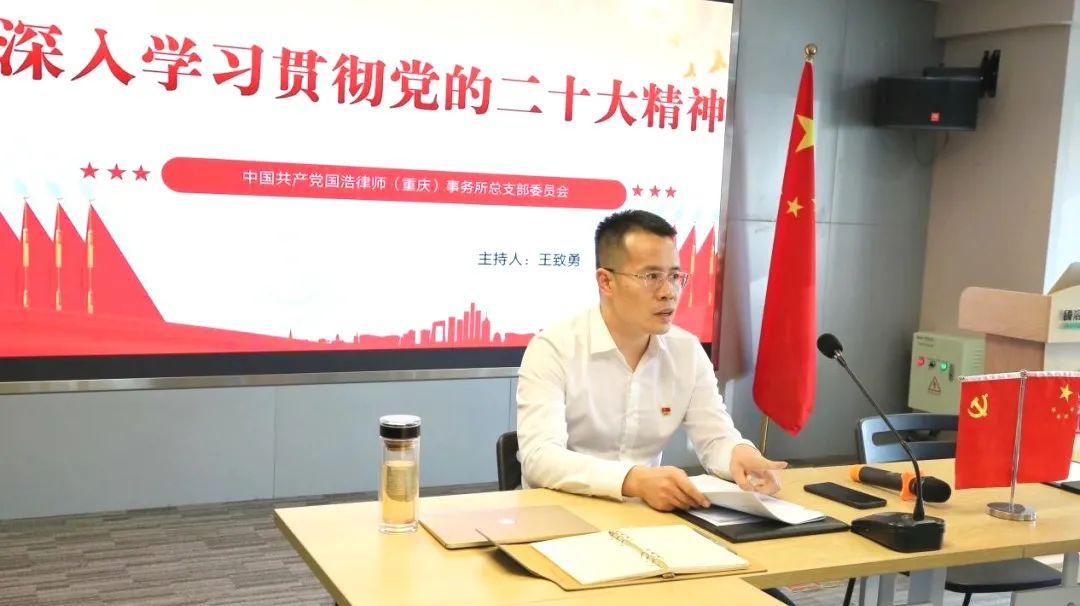11月1日,國浩重慶黨總支召開學習(擴大)會議專題學習貫徹黨的二十大精神。國浩重慶黨總支書記、合伙人王致勇主持會議,國浩重慶黨員、共青團員以及民主黨派人士代表參與了會議。