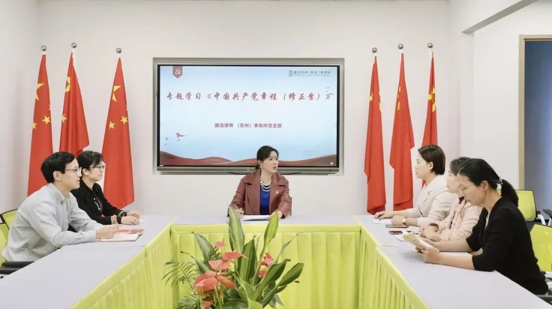 葛霞青主任就“新黨章新在哪里”進行了解讀,加深了大家對黨的性質、理想目標、指導思想、基本要求、黨員義務權利的認識。國浩蘇州黨員律師深受鼓舞,表示要不斷深入學習、全面領會、忠實踐行,嚴格遵守黨章、貫徹黨章、維護黨章,為廣大黨員作出表率,充分展示新時代律師行業積極進取、昂揚向上的學習風貌,為推動新時代法律服務業發展貢獻力量。