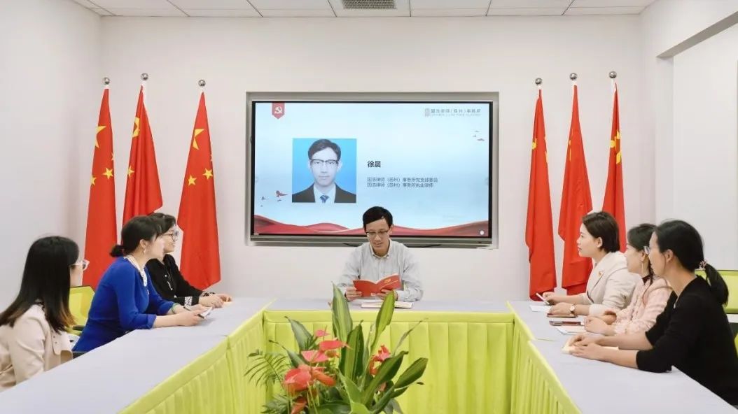 專題學習會結束后,國浩蘇州全體黨員律師共同唱響了歌曲《沒有共產黨就沒有新中國》,以鏗鏘有力的歌聲、積極澎湃的心情、奮發向上的狀態,抒發了對黨的忠誠和對祖國的熱愛,展示了國浩蘇州黨員凝心聚力、擔當作為、團結奮進的精神風貌。陳靜瑤副書記、李嵐副書記、王麗淋委員、徐晨委員等國浩蘇州律師還在分享環節交流了學習體會。