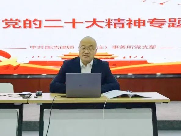 10月29日,國浩石家莊黨支部組織國浩石家莊全體律師召開了“學習黨的二十大精神”專題會議。國浩石家莊黨支部書記、管理合伙人、主任高曉光進行了主題宣講,管理合伙人谷景生交流了學習心得體會,國浩石家莊全體律師、律師助理通過線上參加了會議。