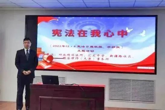 12月2日,國浩天津律師張永泉為天津匯文中學 2600余名學生開展憲法日普法空中課堂活動,張永泉律師通過點評學生們制作的憲法日主題黑板報、手抄報,講解憲法知識,激勵初高中學生熱愛祖國,踐行憲法的法治理念。