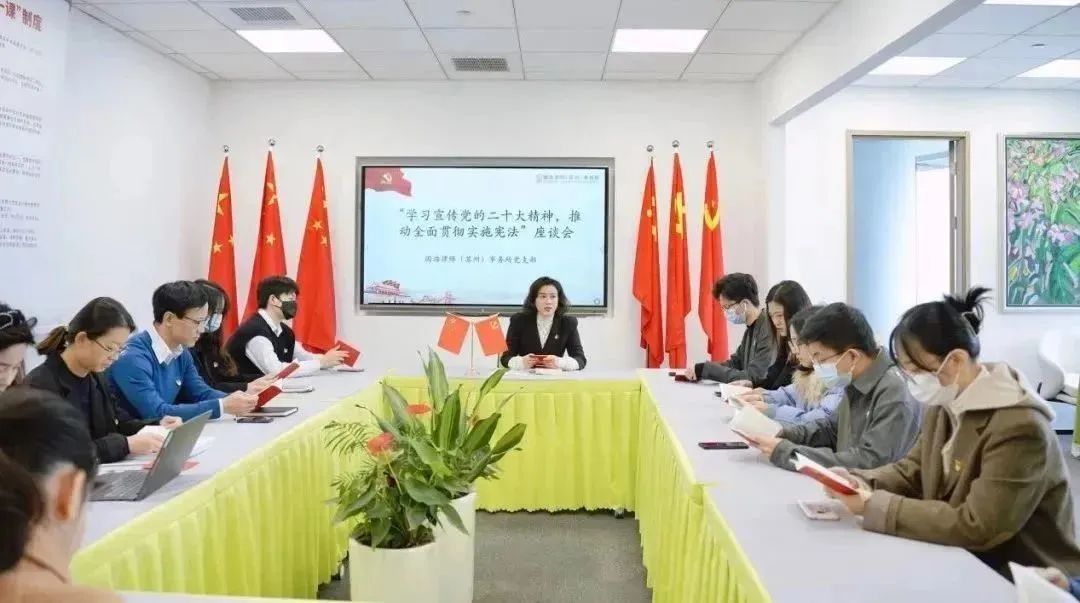 12月2日,國浩蘇州黨支部組織開展了“學習宣傳貫徹黨的二十大精神 推動全面貫徹實施憲法”主題黨日活動。活動由國浩蘇州黨支部書記、管理合伙人、主任葛霞青主持,國浩蘇州全體黨員律師參加了憲法宣誓活動,用鏗鏘有力的誓詞表達了律師們對憲法的尊崇、對法治的信仰和對人民的承諾。