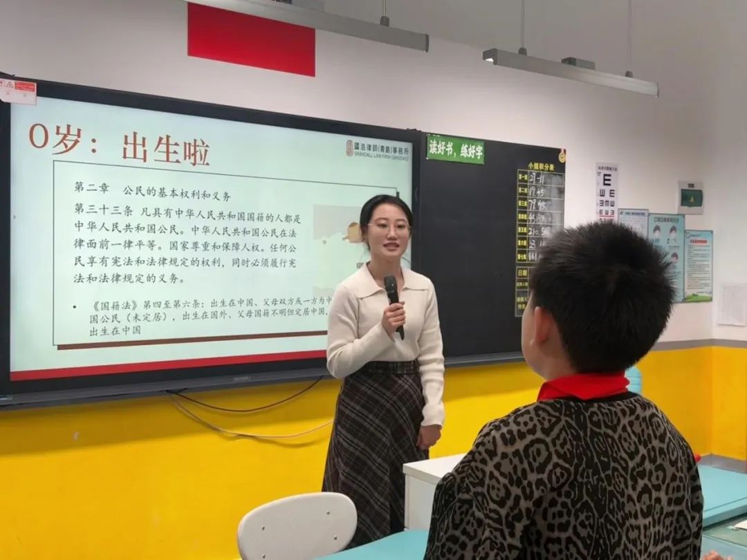 11月25日,國浩青島律師張苧予走進青島市寧夏路小學,為同學們帶來了“紅領巾愛祖國 法治學習伴成長”大思政課主題講座。