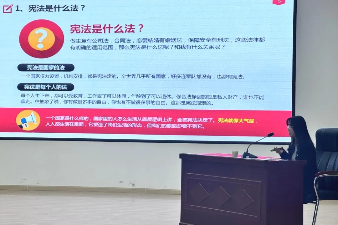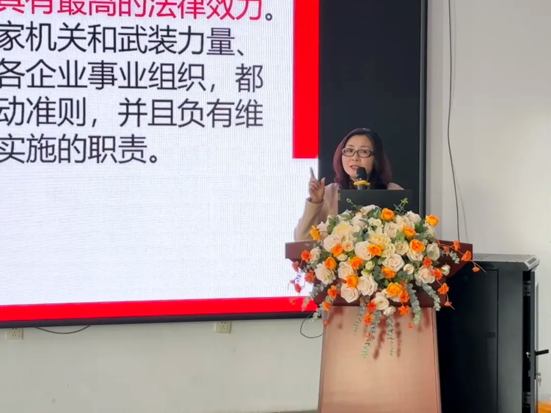紀鑫超律師從憲法概述、憲法重點內容解讀、維護憲法尊嚴與保障憲法實施,以及堅定法治信仰與建設法治中國四個方面,全面生動地闡述了憲法的重要性和每個人在維護憲法權威中的責任與義務。她指出,我們不僅要學習憲法知識,了解憲法賦予我們的權利和義務,更要主動維護憲法權威,積極參與憲法的實施和監督工作。此次講座不僅提升了與會人員的法治觀念,更激發了大家對憲法權威的敬畏之心。